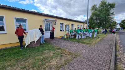 Als wir vor einem Jahr unseren Stein in Kuhberge seiner Bestimmung übergaben, rechneten wir nicht damit, sobald den nächsten Findling einweihen zu können. Wir hatten Glück, es war noch Geld da.