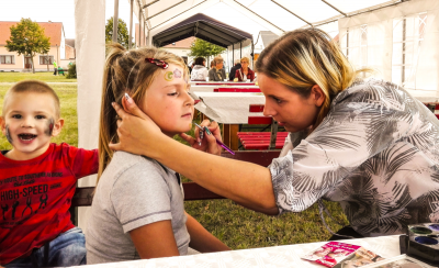 Die Kiddies hatten natürlich auch ihren Spaß auf dem Rasen, konnten ihre Nasen bunt anmalen lassen, übten sich im Tischtennis spielen oder Blechbüchsen umnieten.
